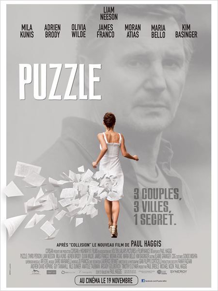 Paul Haggis est probablement l’un de mes cinéastes préférés. J’en parle très peu mais Collision est l’un de mes films préférés de tous les temps. J’avais par la suite beaucoup aimé Les Trois Prochains Jours, son remake de Pour Elle et puis Dans la vallée d’Elah dans un registre complètement différent. J’attendais donc Puzzle avec une certaine impatience mais après les mauvaises critiques, j’ai été légèrement refroidi. Nous suivons donc trois histoires complètement différentes dans trois villes différentes mais toutes ne sont pas aussi intéressantes les unes que les autres. Si j’ai beaucoup aimé celle de Mila Kunis, cette femme qui se défend d’avoir mis en danger la vie de son enfant et de son ex, incarné par James Franco qui tente de tout faire pour l’éloigner de son enfant, j’ai bien moins apprécié celle qui se déroule en Italie. Cela m’a donné l’impression de voir un mauvais film romantique italien entre Adrien Brody et Moran Atias. Le duo a une certaine alchimie mais le scénario manque cruellement de fond et la forme ne suffit clairement pas à sauver le film. Par ailleurs, Paul Haggis se contente plus ou moins du minimum dans ce film chorale aux destins certes plus creusés mais ayant presque les mêmes défauts qu’un mauvais Valentine’s Day.